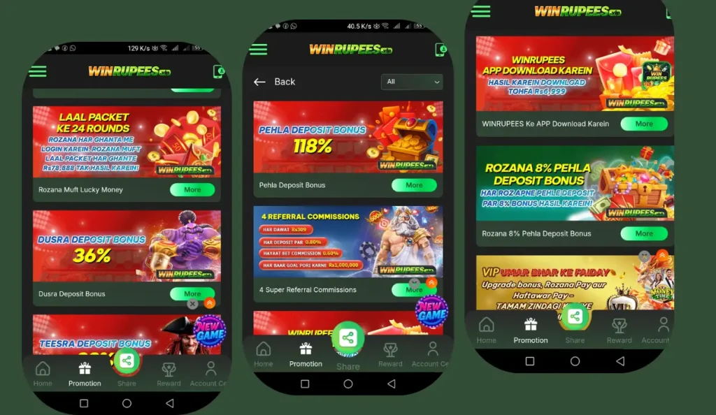 Jump into a new and exciting online gaming and betting platform. This game has a new and exciting gameplay. The game is played all over Pakistan. The Winrupees game is one of the most played online gaming and betting applications. Users appreciate the game’s easy and simple gameplay. This application has cool features and eye-catching graphics. Moreover, this game is one of the rapidly progressing online gaming and betting applications.